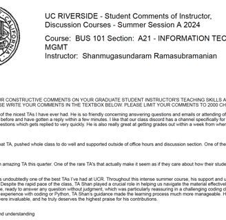 Graduate Ambassador, MBA Program: Representing UC Riverside’s MBA program, engaging with prospective students, and supporting new students as they navigate their academic journey.