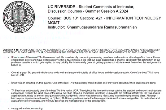 As a Teaching Assistant for Information Technology Management (ITM) and Statistics, I focus on guiding students to apply theoretical knowledge to practical, real-world scenarios. My role involves providing personalized support and fostering an environment where students can excel academically and professionally.